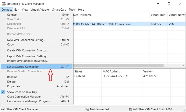 You can also configure the SoftEther VPN client to start this connection every time you turn on your computer.