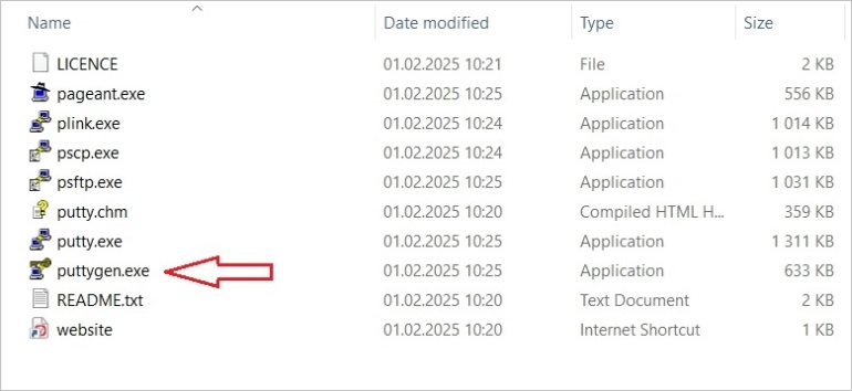 You can now generate a public/private key pair. Go to the folder where you installed PuTTY and find puttygen.exe.